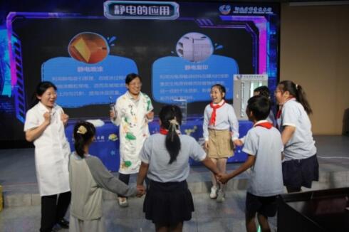 The young visitors yelp with delight as a Leyden jar delivers its crackling shock at Hebei Science and Technology Museum—proof that science can literally make your hair stand on end. (Photo credit: Hebei Science and Technology Museum)