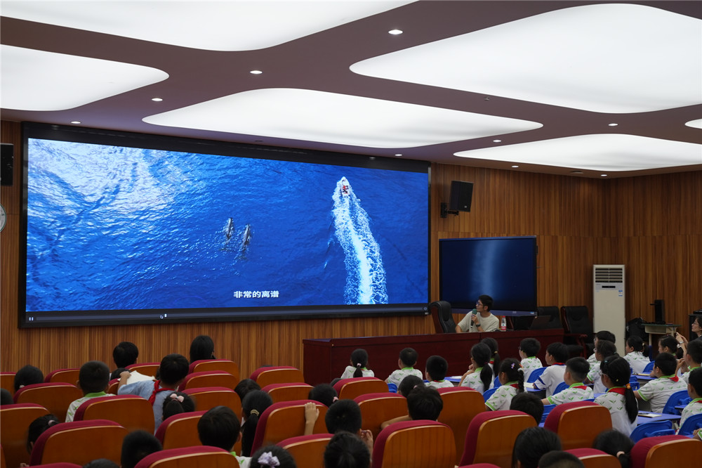 当天上午还在千岛湖潜水,在水底捡垃圾的潘天鸿先给孩子们放了最新鲜的水下视频,从这一刻开始,孩子们的小嘴就没合上过,每个精彩的视频放出来,都能听到一阵阵“哇……”的声音。